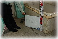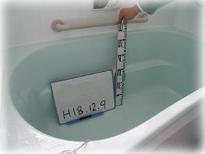 こちらのお宅ではユニットバスへの変更により、浴槽の深さが8cm浅くなり入りやすくなりました。浴室床と浴槽底部の高低差も10cmと小さくなり動作が楽になりました。 |